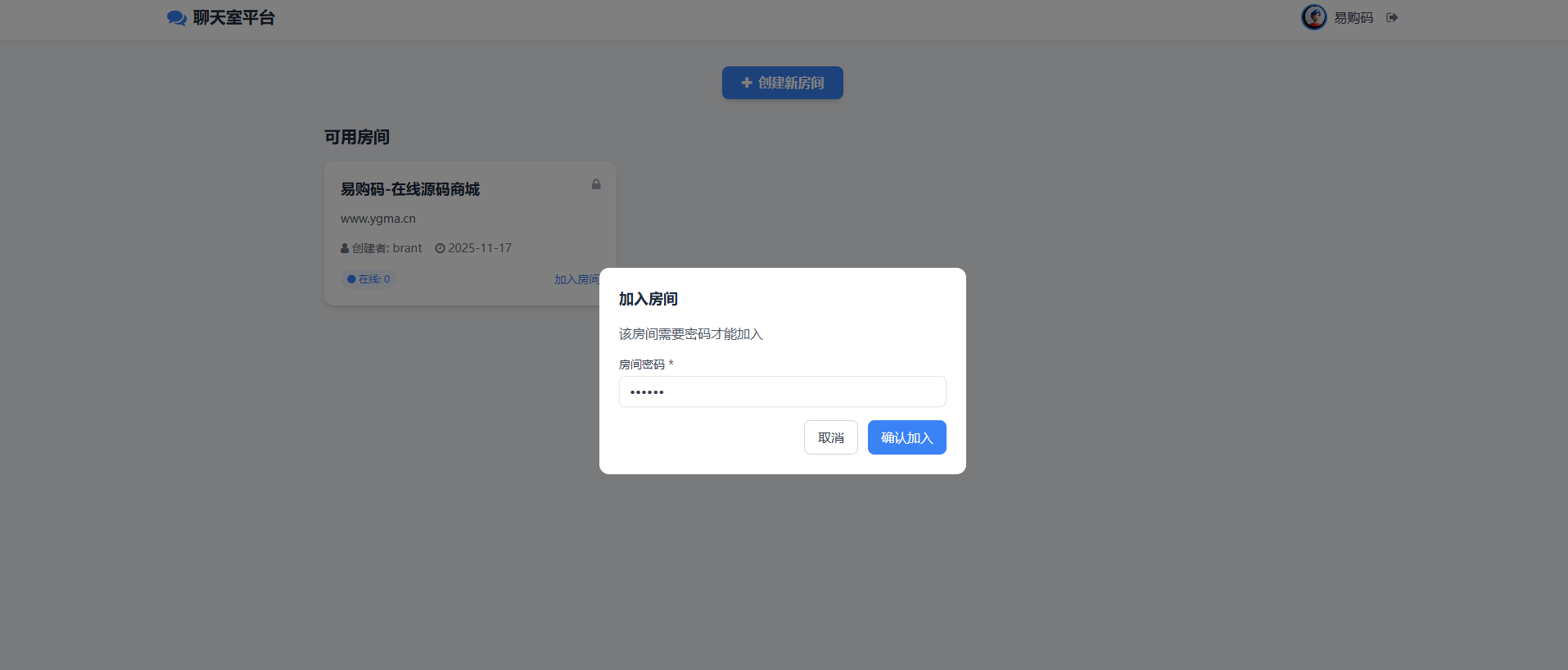 房间管理:支持创建带密码保护的群聊房间,加入房间需要验证
